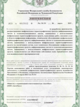 Лицензия ФСБ №0015832, клеймо РФ 1226